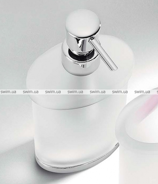 Дозатор жидкого мыла Colombo Design Land B9319 имеет классическую овальную форму. Емкость дозатора выполена из белого матового стекла декорированная хромированным основанием. Помпа дозатора имеет плавный ход и при использовании раздает жидкое мыло равными порциями, не переливая его после нажима.