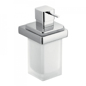 Дозатор жидкого мыла подвесной Colombo Design Lulu B9321 имеет классическую прямоугольную форму. Емкость дозатора выполнена из белого матового стекла декорированного держателем и помпой из позолоченной или хромированной латуни. Помпа дозатора имеет плавный ход и при использовании раздает жидкое мыло равными порциями, не переливая его после нажима.