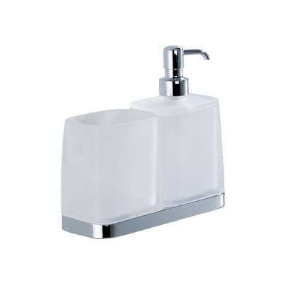 Дозатор жидкого мыла и стакан для зубных щеток настенные Colombo Design Time W4271 выполнены из белого матового стекла и располагаются на хромированной подставке-держателе. Помпа дозатора имеет плавный ход и при использовании раздает жидкое мыло равными порциями, не переливая его после нажима.Монтаж не потребует специальных навыков.