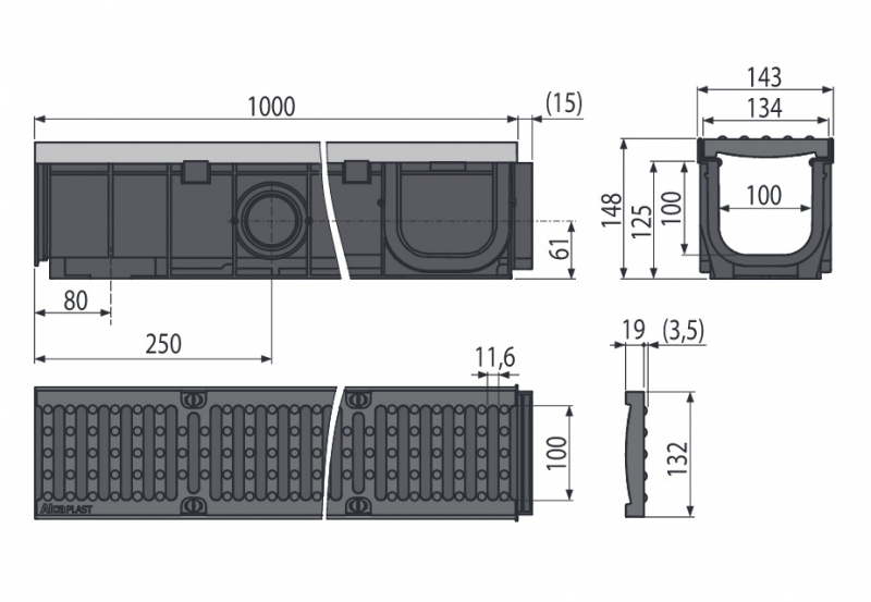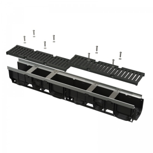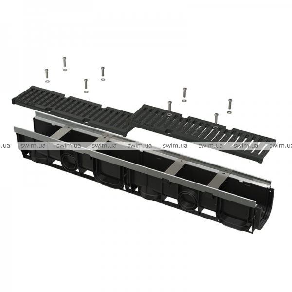 - Чугунная решетка – фиксация в корпусе канала с помощью восьми болтов из нержавеющей стали, ширина сливных щелей – 11,6 мм