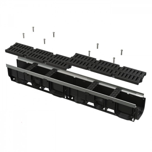 - Композитная решетка - фиксация в корпусе канала с помощью восьми болтов из нержавеющей стали, ширина сливных щелей - 14 мм