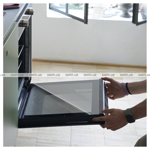 - Режими та функції духовки 9 функцій, серед них традиційне нагрівання, парове очищення, традиційне нагрівання та конвекція, гриль, турбогриль, нижнє нагрівання, розморожування, конвекція, хліб