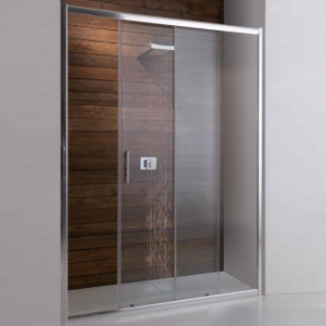 Дверь купе PSC50 из прозрачного закалённого стекла 6 мм с хромированным глянцевым профилем из алюминия