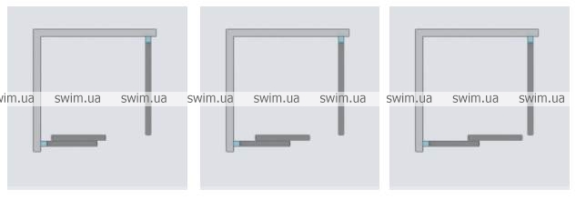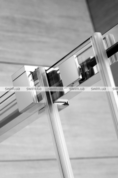 Двери в кабинах легко регулируются благодаря эксцентрической конструкции верхних роликов. В верхней части кабины используется инновационная система торможения двери. Внизу двери находятся мягкие салазки (подвижная деталь), обеспечающие тихое перемещение двери. Салазки можно расфиксировать для удобной очистки кабины.