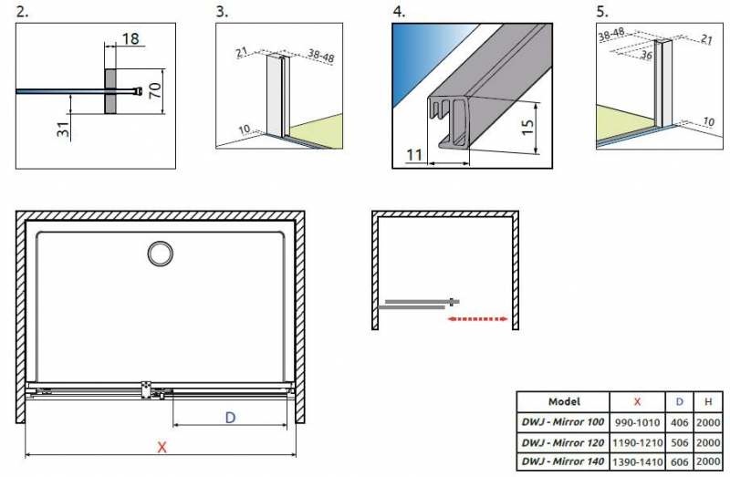 - одностворчатая раздвижная дверь в нишу (DWJ).