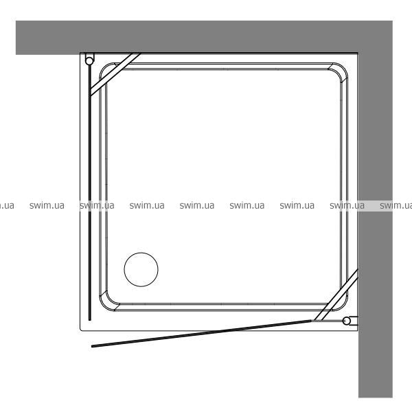 - Душевая кабина SX с 1 распашной дверью и боковой неподвижной стенкой для душевого поддона 80x80