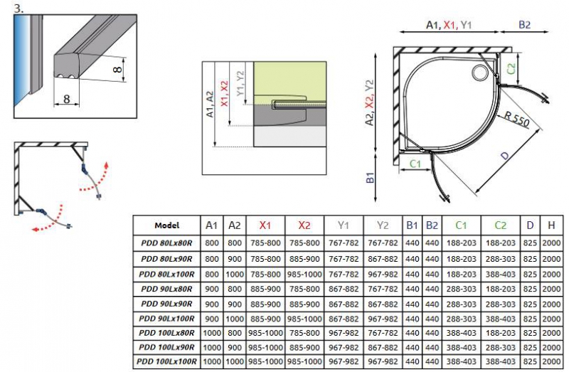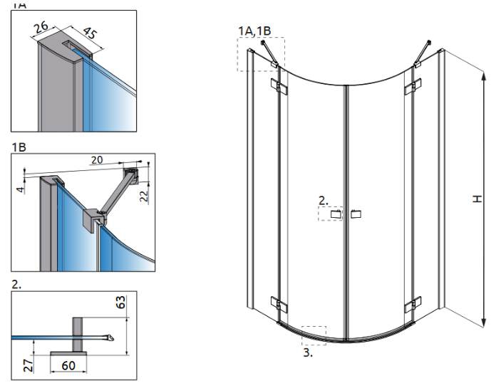 - Безопасное закалённое стекло толщиной 6 мм, согласно стандарту PN:EN 12150:1 (прозрачное)