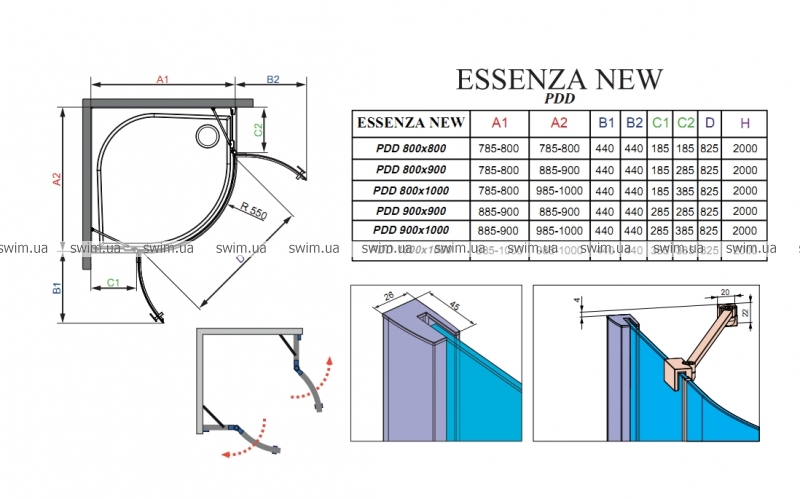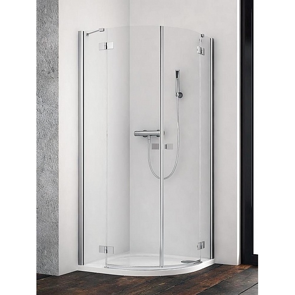 Серия кабин Essenza создавалась с мыслью о клиентах, предпочитающих минималистические формы. Легкость конструкции удалось получить благодаря соединению больших листов стекла и хромированных петель. Вход в кабину, широкий и удобный. Петли оснащены подъемно-опускным механизмом. Конструкция петли и пристенных профилей позволяет легко открывать и закрывать двери, а также избежать повреждений алюминиевого порога. Стекло имеет в стандарте покрытие Easy Clean, которое предотвращает осаждение камня и других загрязнений на стекле и облегчает ежедневный уход за кабиной. Герметичность кабины обеспечивают магнитные уплотнители на дверях и эластичные уплотнители между дверями и неподвижными частями кабины. Особое внимание стоит обратить на высоту кабины – 2000 мм. Благодаря этому кабины хорошо смотрятся на низких поддонах.