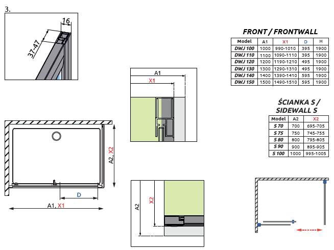 ***В состав комплекта Premium Plus DWJ+S входят два элемента: дверь и боковая стенка. Каждый элемент имеет индивидуальный номер артикула. Заказывая кабину, нужно указать два номера артикула, указывая тем самым цвет стекла двери и боковой стенки.