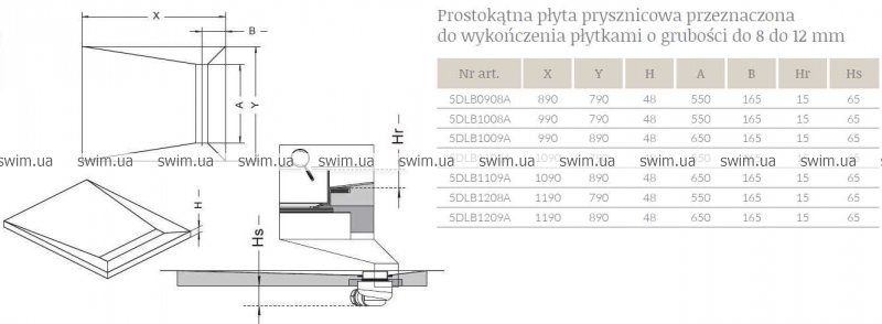 - Квадратная душевая плита предназначенная для укладки плитки толщиной от 5 до 7 мм