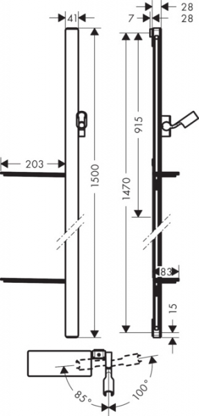 - держатель ручного душа регулируется в пределах 90°, поворачивается вправо и влево, перемещается вверх и вниз
