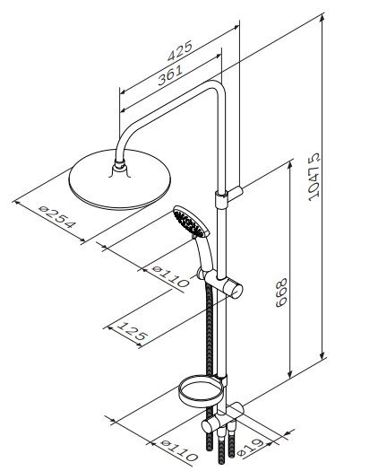- Диаметр верхнего душа: 250 мм
