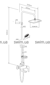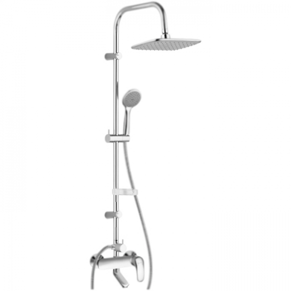 - Комплектация: верхний душ, держатель ручного душа, душевая шланга, мыльница, ручной душ, смеситель для ванны