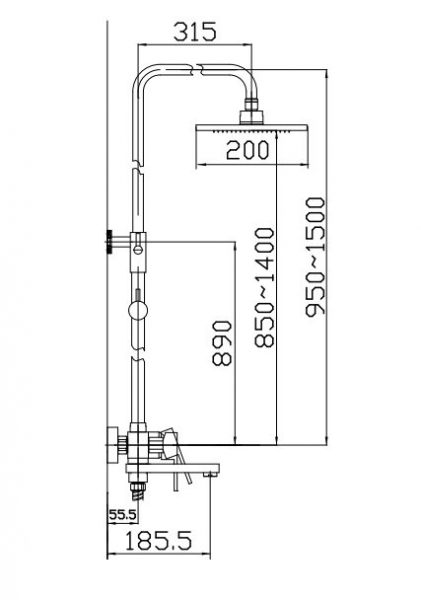 - В комплекте: душевая штанга, смеситель, верхний душ, лейка для ручного душа, держатель душевой лейки, шланг