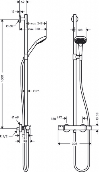 → Душевая система Hansgrohe Croma Select E SemiPipe 27248400 Multi