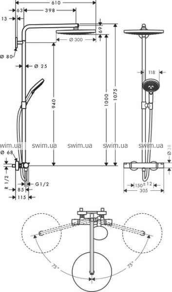 → Душевая система Hansgrohe Raindance Select E Showerpipe 300 27133400 2jet