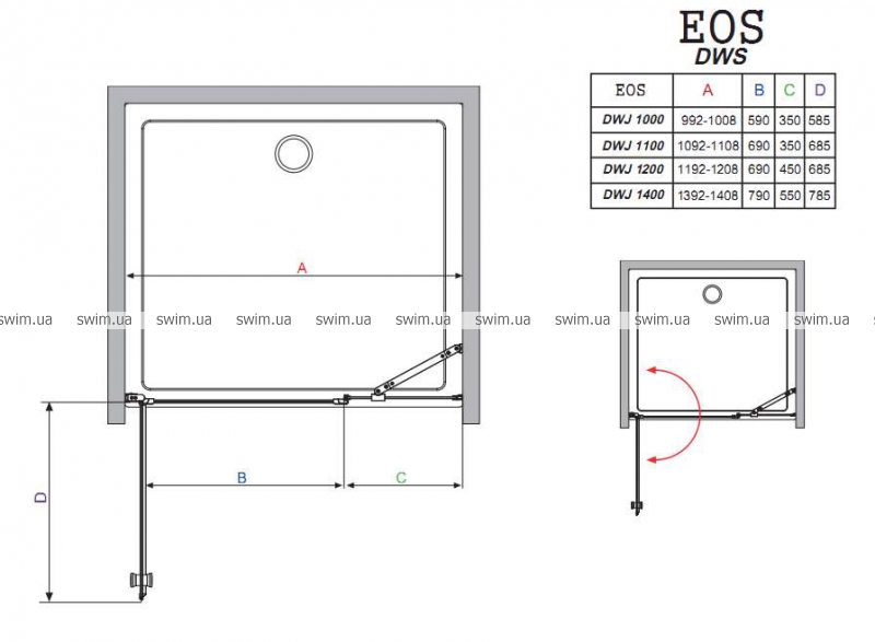 - Ширина рекомендуемого поддона: 1090-1110 мм