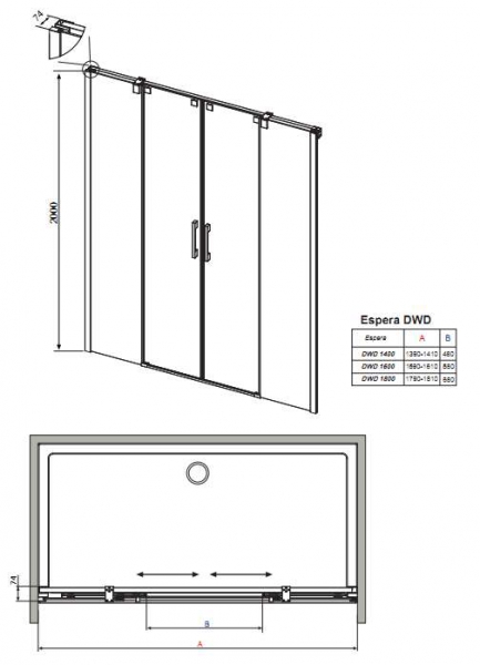 Серия кабин Espera характеризуется простотой, минимализмом и современным дизайном. Это кабины, в которых количество алюминиевых профилей минимально ограничено, а высота составляет 2 метра. Во всех моделях используется стекло толщиной 8 мм с покрытием Easy Clean.