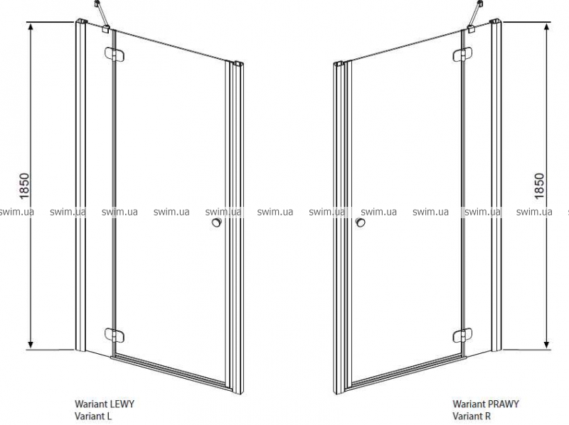 В состав серии входят: шторки на ванну и пять моделей кабин, полукруглая с одностворчатой дверью, полукруглая с двустворчатой дверью, квадратная/прямоугольная с одно- или двустворчатой дверью и двери в нишу. Полукруглые кабины доступны в прозрачном и графитовом стекле, прямоугольные кабины и двери в нишу доступны в прозрачном, графитовом и каррэ.