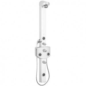 - Накладные панели термостата, верхнего душа и нижней части корпуса из пластика (накладная панель термостата включает полочку и держатель душа)