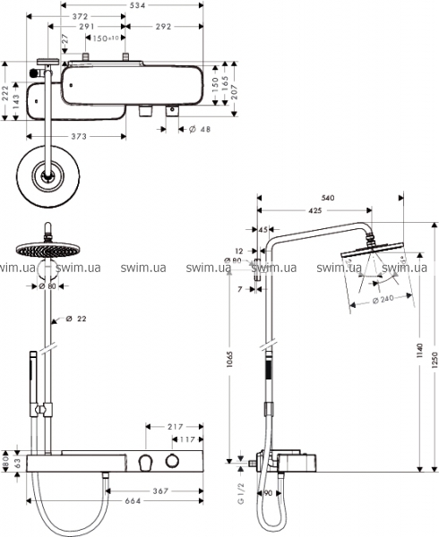 - Верхний душ Axor Starck 240 1 jet, ½’ (# 28494XXX)