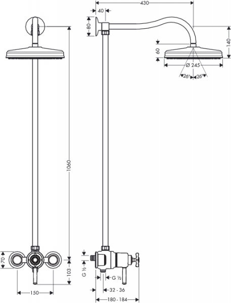 - Верхний душ Ø 240 мм, ½’ (# 28474XXX)