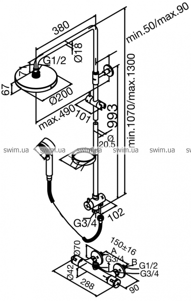- Верхний душ диаметром 200 мм