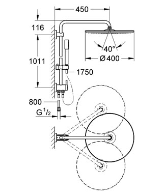 - Горизонтальный поворотный душевой кронштейн 450 мм