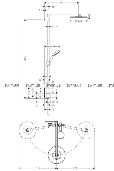 - длина держателя для душа: 460 мм