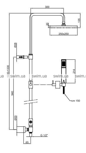 - С ручным душем (с антиизвестковым покрытием) 214 мм