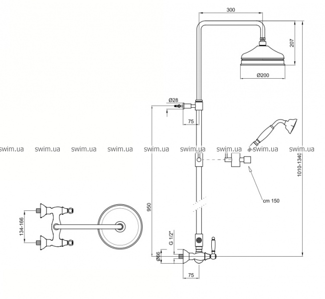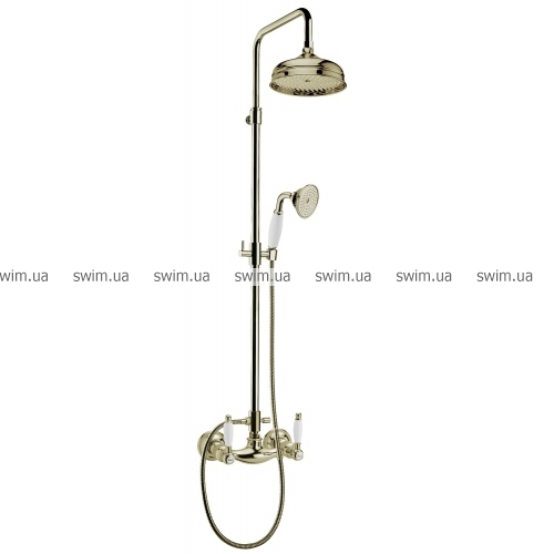 - С душевой штангой, верхним душевым зонтом и ручным душем