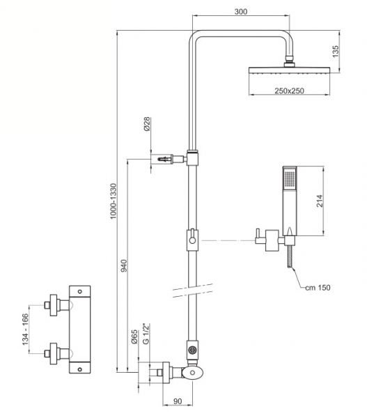 - С душевой штангой, верхним душевым зонтом и ручным душем