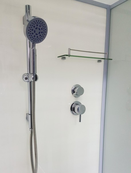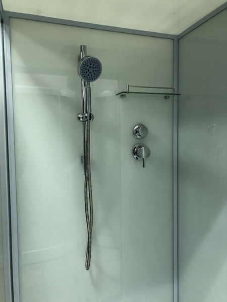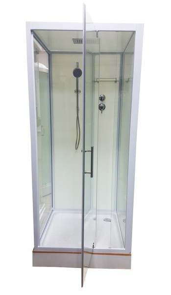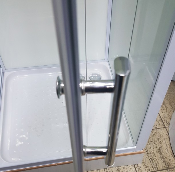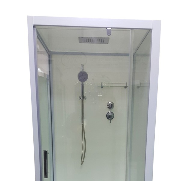 Душевой бокс VERONIS BN-1-04 выполнен из прочного каленного прозрачного стекла толщиной 5 мм передних дверей и по 4 мм боковых и задней стенки.