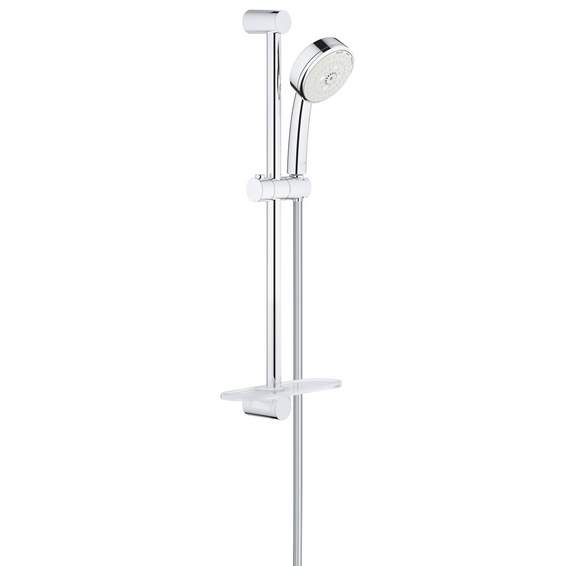 Душевой гарнитур GROHE TEMPESTA COSMOPOLITAN идеально подходит для ванных комнат с современными интерьерами и оригинальными архитектурными решениями, а полочка позволит иметь необходимые средства гигиены всегда под рукой.