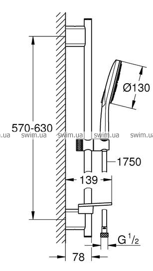 - расстояние между отверстиями в душевой штанге: 570-630 мм