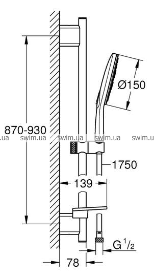 - расстояние между отверстиями в душевой штанге: 870-930 мм