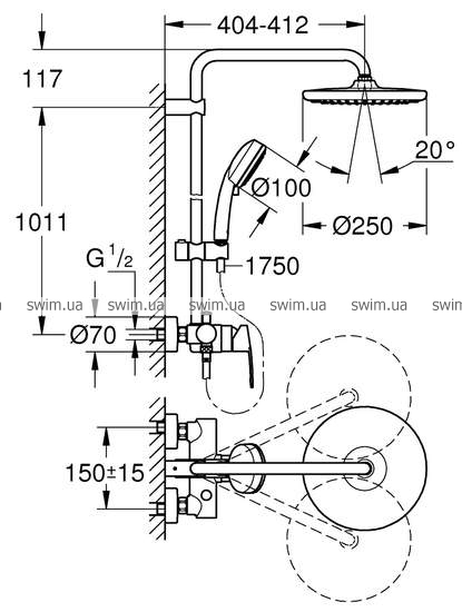 - верхней душевой лейкой Tempesta 250