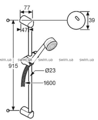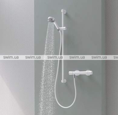 - Комплектация: душевая штанга, ручная лейка, держатель для душа, душевой шланг