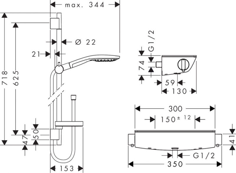 - Душевой набор 150 3jet со штангой 65 см и мыльницей (# 27802400)