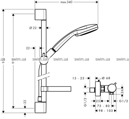 → Душевой набор Hansgrohe Croma 100 27033000 90 см Vario EcoSmart