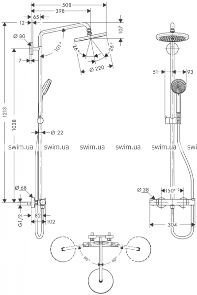 Душевой набор Hansgrohe Croma Showerpipe 220 27185000 1jet