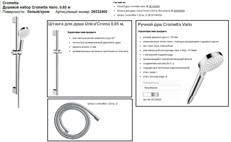 Душевой набор Hansgrohe Crometta Vario Unica Set 26532400 Душевой набор Hansgrohe Crometta Vario Unica Set 26532400 Душевой набор Hansgrohe Crometta Vario Unica Set 26532400 Душевой набор Hansgrohe Crometta Vario Unica Set 26532400