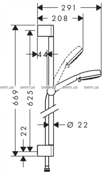 - душевая штанга 669 мм с подвижным держателем