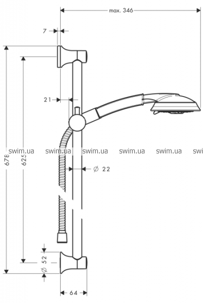 - Душевая штанга Classic 65 см со шлангом (# 27617000)