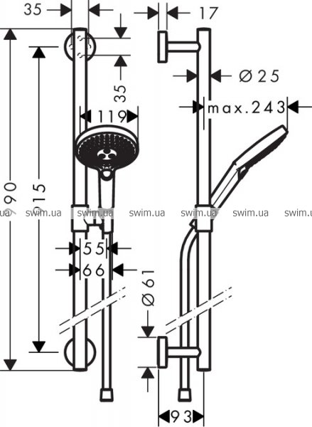 - Душевая штанга Comfort 90 см (# 26402000)