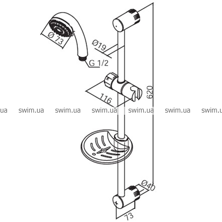 - Длина душевой штанги: 620 мм