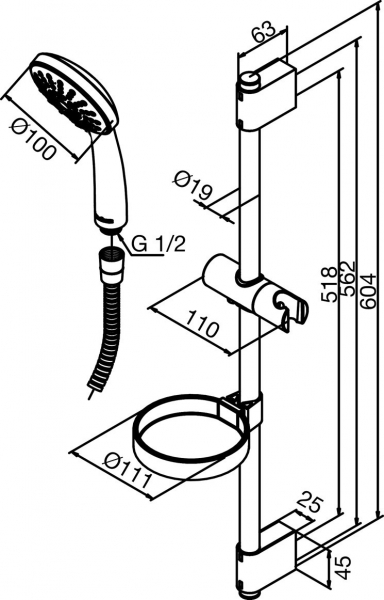 - Pучной душ с 1 функцией (Импульсный душ)