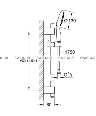 - Душевая штанга 900 мм (27 785 000) с металлическими настенными креплениями