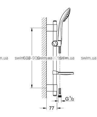 - GROHE QuickFix® (регулируемое расстояние между настенными креплениями штанги позволяет использовать для монтажа уже имеющиеся отверстия в стене)