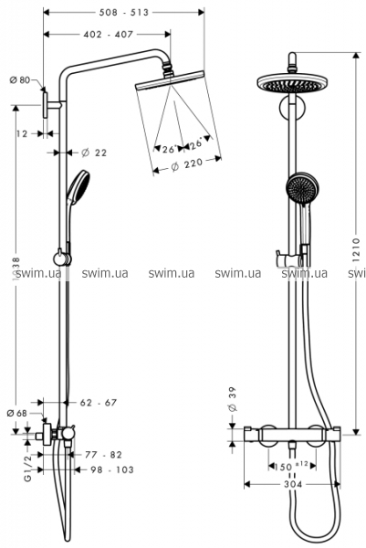 → Душевой набор Hansgrohe Croma Showerpipe 220 27188000 1jet EcoSmart